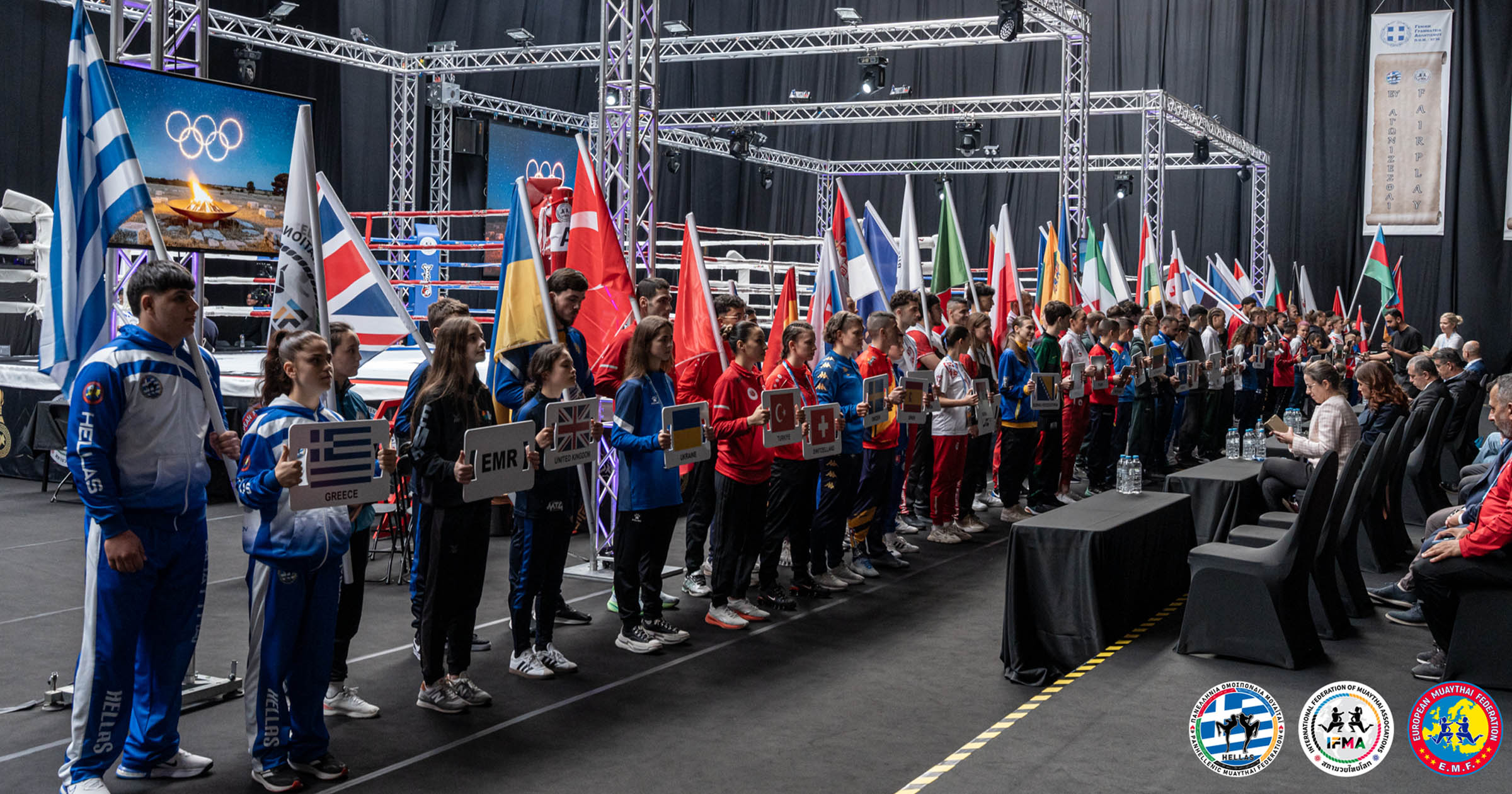 Η Πανελλήνια Ομοσπονδία Μουάιτάι – Π.Ο.Μ. γιορτάζει την έναρξη του Ευρωπαϊκού Πρωταθλήματος Muaythai 2025, το οποίο στέφεται με ιδιαίτερη σημασία, καθώς η Ελλάδα φιλοξενεί για τρίτη συνεχόμενη χρονιά διεθνή διοργάνωση υπό την αιγίδα της Παγκόσμιας Ομοσπονδίας Μουάιτάι – IFMA / International Federation of Muaythai Associations και της Γενικής Γραμματείας Αθλητισμού. Η Tελετή Έναρξης αποτέλεσε μια εντυπωσιακή γιορτή ενότητας και διεθνούς αθλητικού πνεύματος, με 39 χώρες να παρελαύνουν με τις σημαίες τους και να ανταλλάσσουν το μήνυμα του σεβασμού και του “Ευ Αγωνίζεσθαι“.